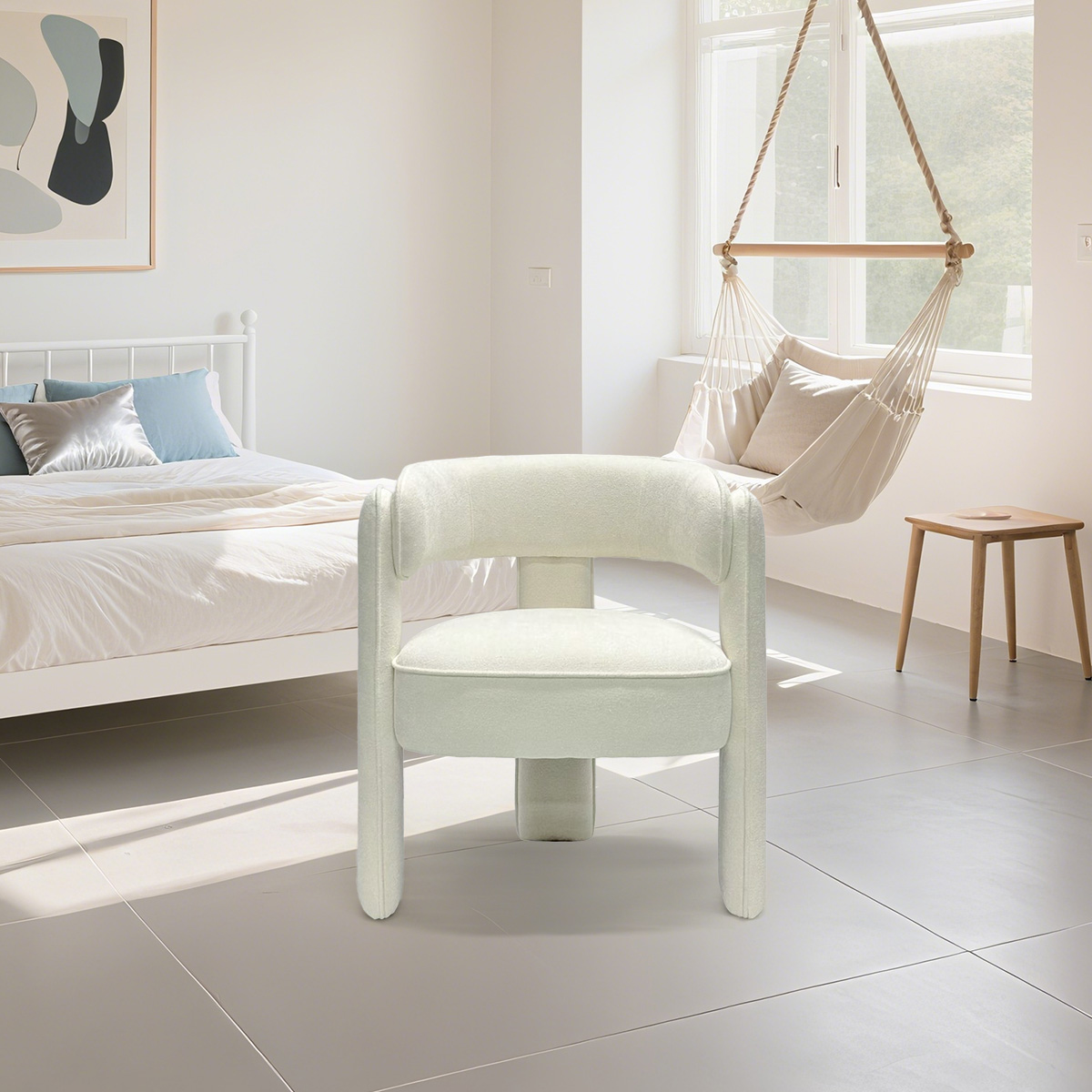 Moderne White Boucle Barrel Accent Chair med åpen rygg – Polstret lenestol for spisestue og stue