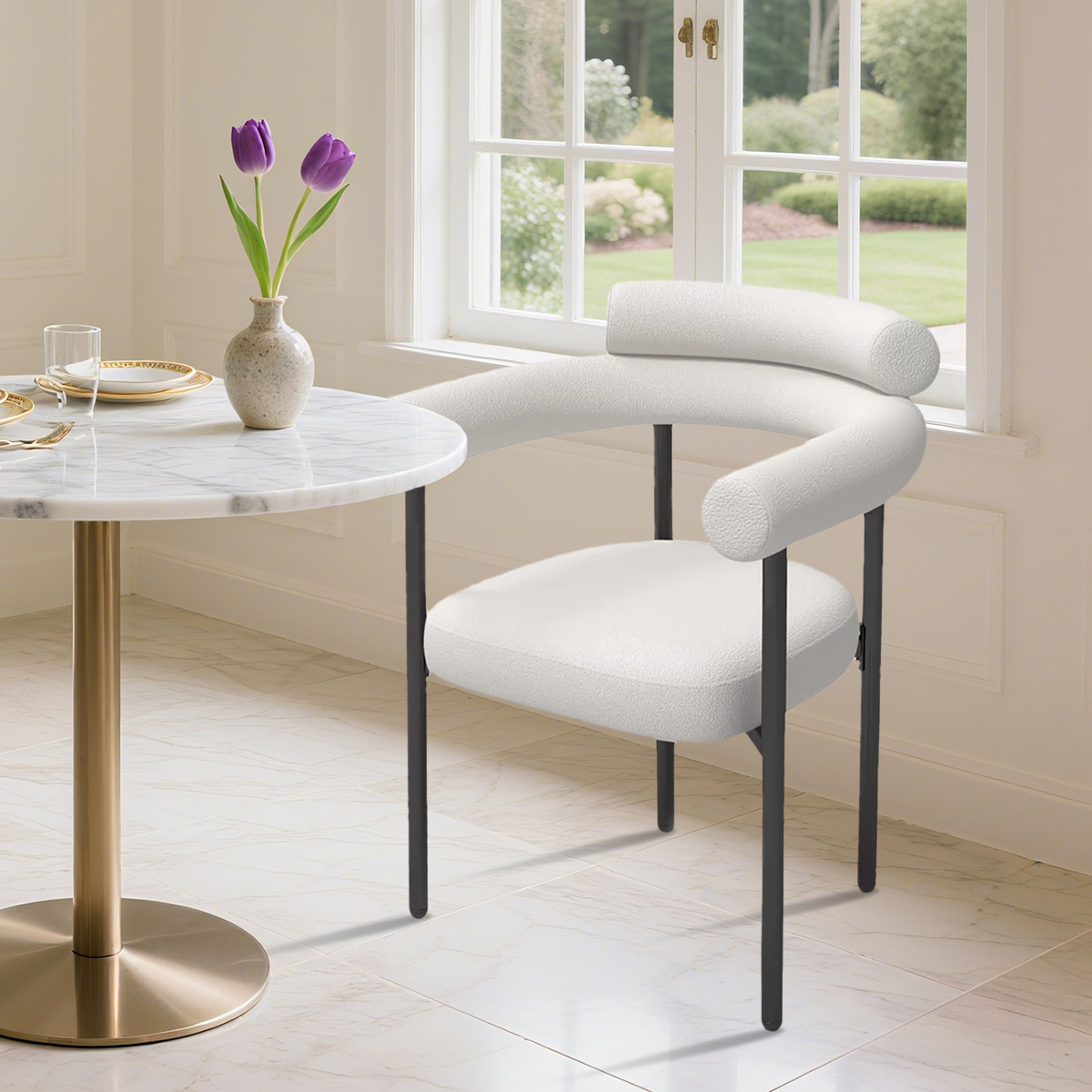 lære merVårt metallben dobbelt rygg mykt arm Teddy Velvet Dining Stol har luksuriøst bamse fløyelsstoff for en uimotståelig myk følelse, mens dobbeltryggen gir utmerket lumbalstøtte for lange måltider eller samlinger. Tykne armlener gir komfort og er ideelle for restauranter, kjøkken og kafeer. Solide metallben sikrer holdbarhet og stabilitet.