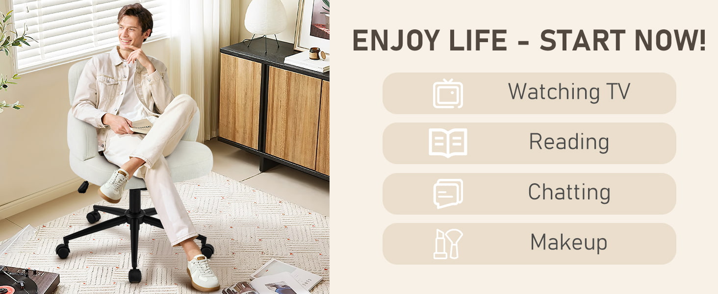 Innpakket i pustende chenillestoff og støttet av en tykk skumpute, gir stolen langvarig komfort for arbeid, lesing eller avslapning. Justerbar setehøyde, jevn 360° svinging og en skånsom vippefunksjon lar brukerne enkelt tilpasse sittestillingen sin. En solid metallbase med lydløse hjul sikrer stabilitet, mobilitet og gulvbeskyttelse – noe som gjør den til en praktisk og elegant sitteløsning for moderne livsstil.