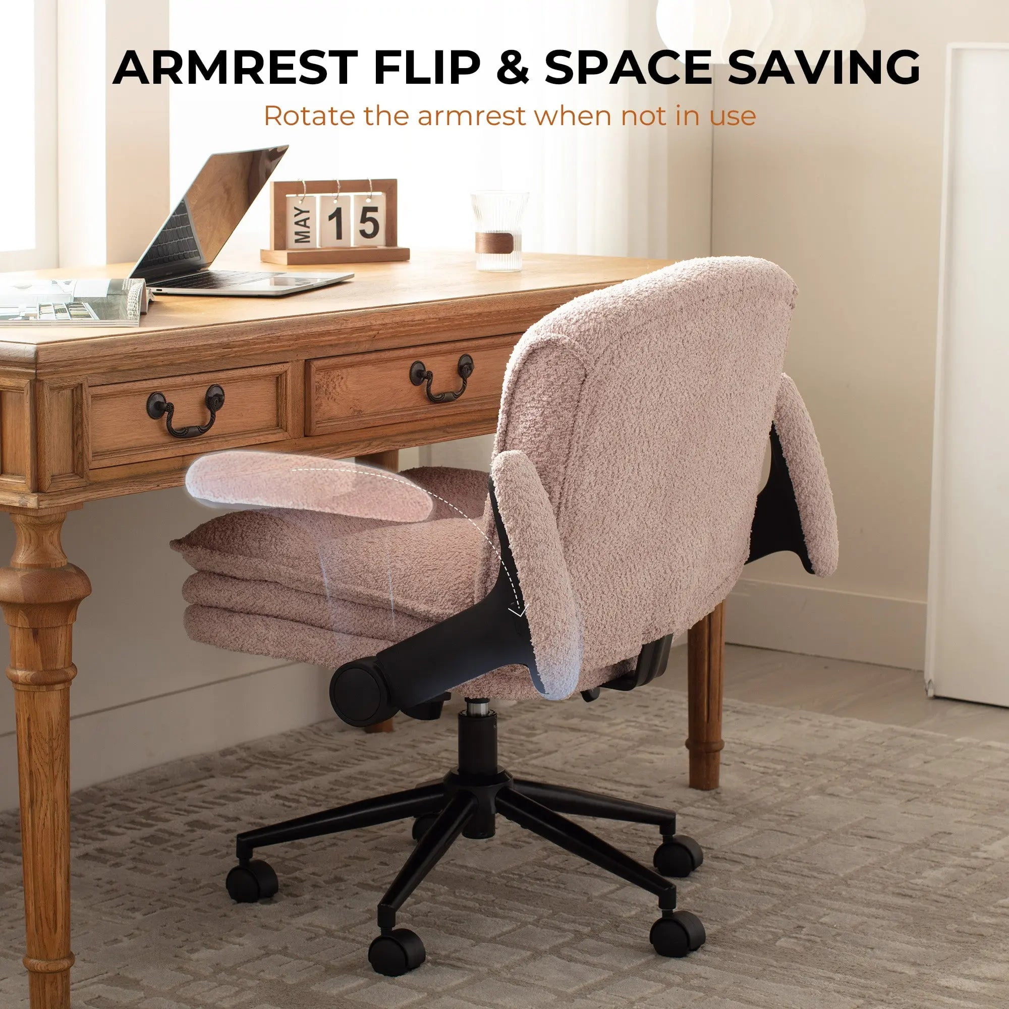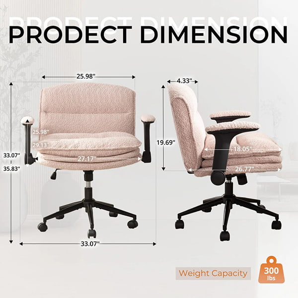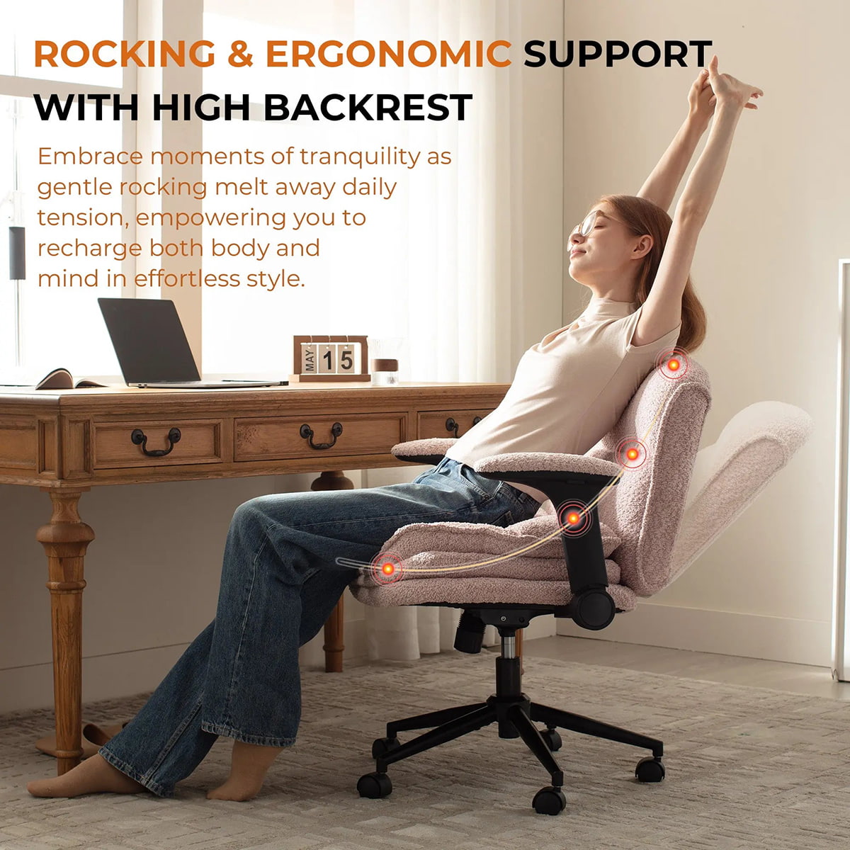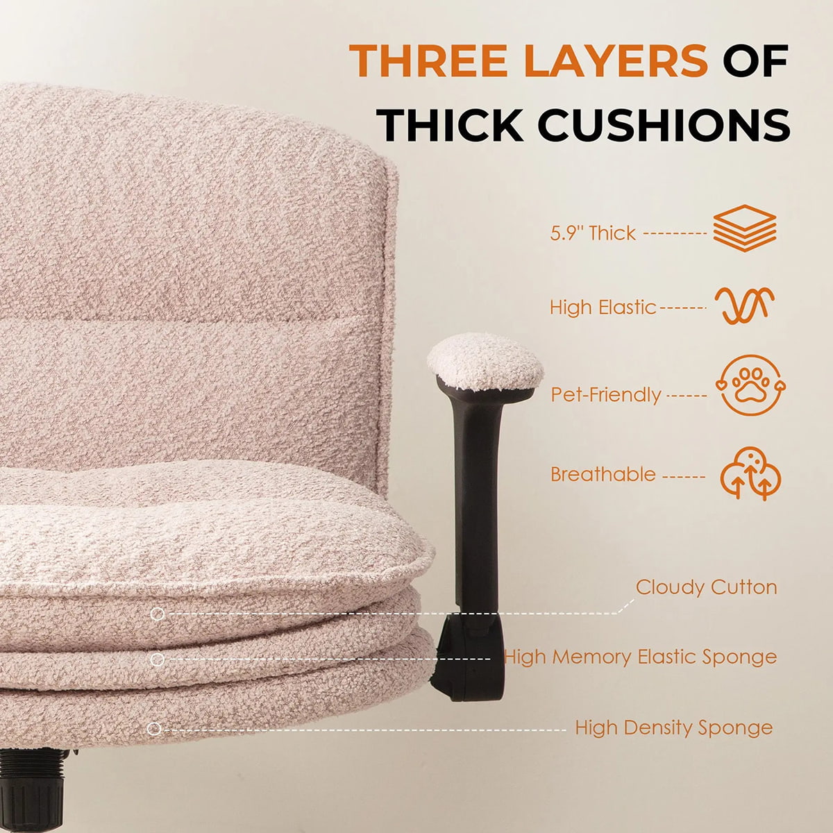 ① Criss Cross kontorstol med vippearmer og 3-lags pute — Ergonomisk Bouclé-skrivebordsstol med bred sete med hjul
